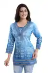 Elegant Pastel Color Summer Cool Printed Short Kurti Tunic Top For Women