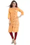 Parade in the sheer pride of the glamour that this Pearl Peach Asymmetrical Design Tunic Dandelion and Checkered Print Plus Button Detailing brings to your close. This Snehal Creation piece comes done in a combination of monochrome but distinctly printed fabric. An asymmetrical line separates the tunic at the front and is decorated with buttons. The sleeves also come in dandelion print along with checkered cuffs. The round neckline is decorated with minute red thread work detailing.