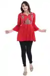 RED STAR CREPE FABRIC WOMEN TUNIC TOP WITH EMBROIDERY WORK